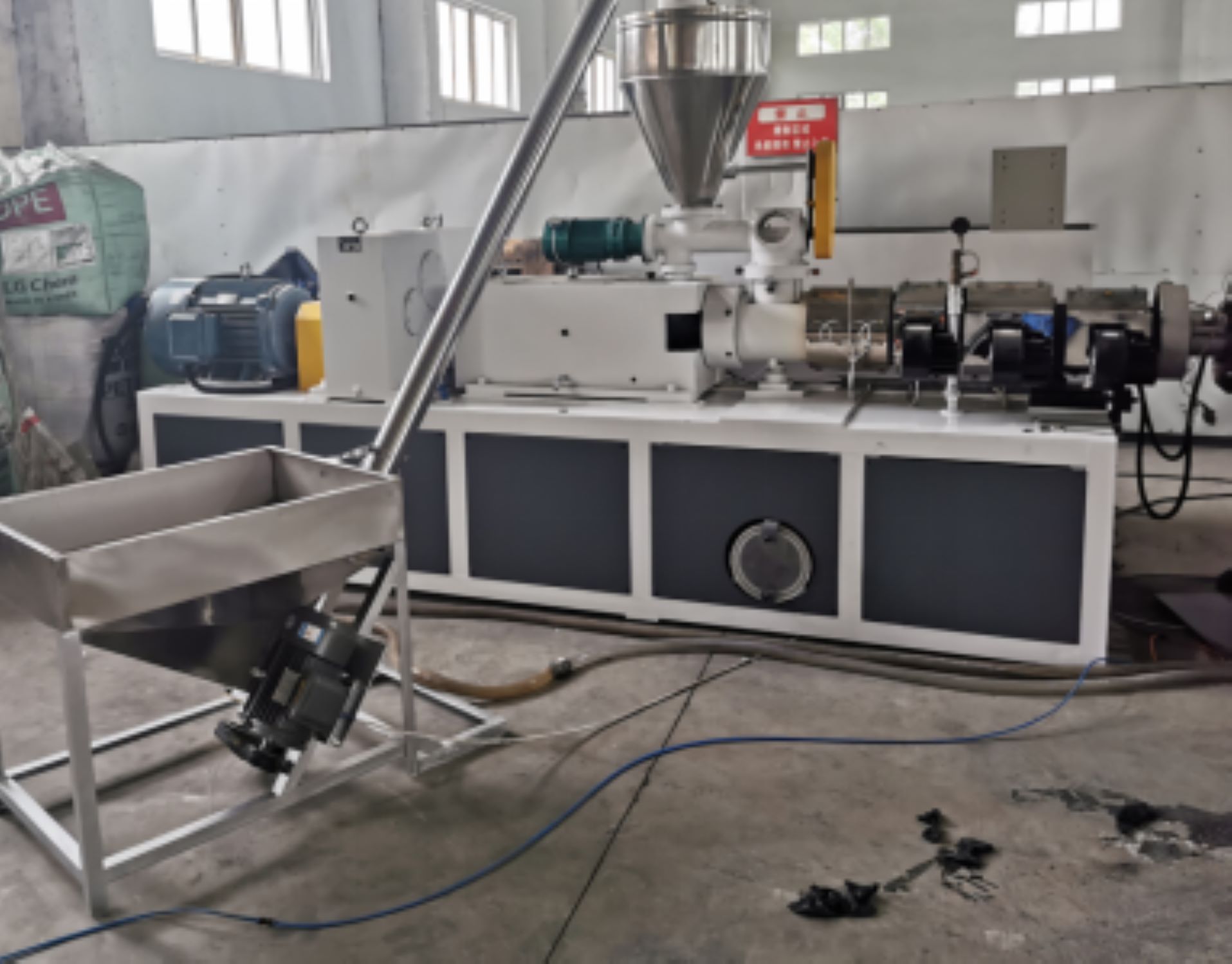 2 ။ PVC ပိုက်ထုတ်လုပ်မှုလိုင်းတွင် Twin-Twin Extruder, Vacuum Canibration Tank, Priter, Trailer, Cutter, Stacker Trane စသည်တို့ပါဝင်သည်။